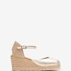 d’orsay λουράκι αστραγάλου εσπαντρίγγια από μεταλλικό δέρμα. Σφήνα raffia φυσικού χρώματος ύψους 5 cm και πλατφόρμα 1 cm. ελαφρύτερη και πιο ευέλικτη σόλα eva από ποτέ, χάρη στην τεχνολογία superlight. μεσογειακή ουσία στα παπούτσια unisa.