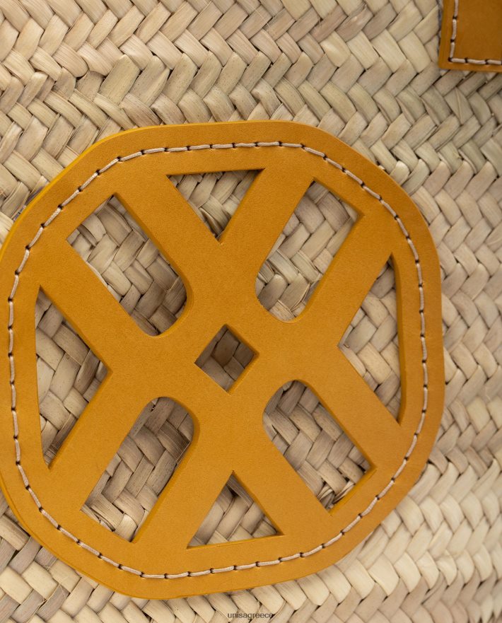 κίτρινος 84Z4P1097 γυναίκες Unisa μεσαίο πλεκτό καλάθι με δερμάτινα χερούλια και λογότυπο