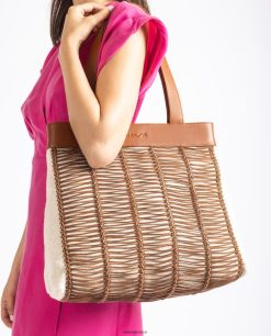 καφέ 84Z4P1110 γυναίκες Unisa μεγάλη τσάντα από ύφασμα και δέρμα
