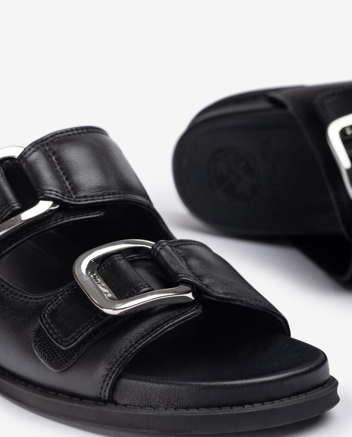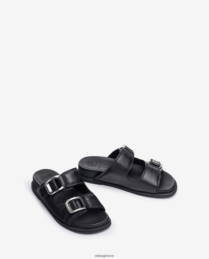 μαύρος 84Z4P319 γυναίκες Unisa ίσιο πέδιλο με διπλή αγκράφα
