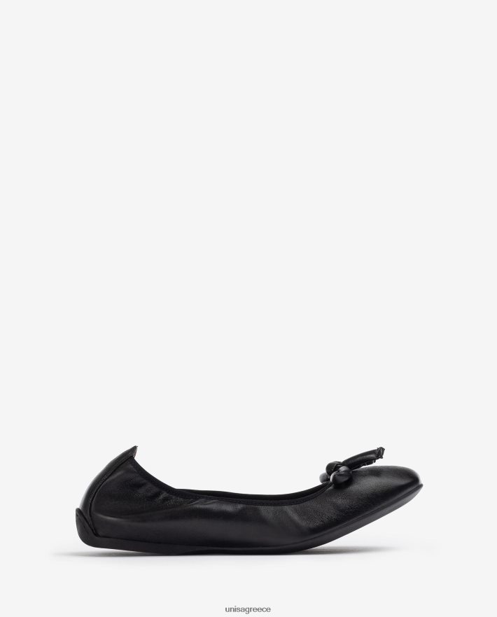 μαύρος 84Z4P643 γυναίκες Unisa δερμάτινη μπαλαρίνα με φιόγκο