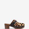 μουλάρι με διακοσμητικά καρφιά γύρω από την επάνω άκρη του βαμπ. πολύ ελαφρύ τακούνι μπλοκ με εφέ ξύλου 6 cm και πλατφόρμα 3,5 cm. αντιολισθητική σόλα από καουτσούκ.