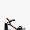 πέδιλο τετράγωνης σόλας από λουστρίνι. φαρδύ τακούνι 6 cm σε ταιριαστό τόνο. ένα λουρί αστραγάλου που μπορεί να ρυθμιστεί χρησιμοποιώντας τη μεταλλική πόρπη. δερμάτινη σόλα.