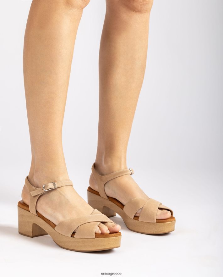 μπεζ 84Z4P408 γυναίκες Unisa μεσαίου ύψους σουέντ σανδάλι με τακούνι