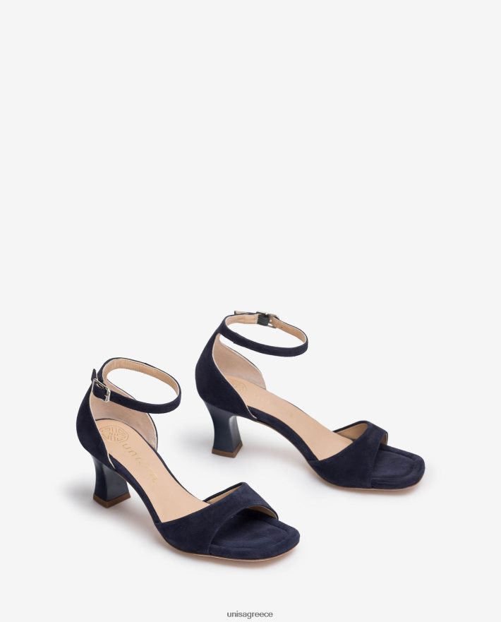 μπλε 84Z4P195 γυναίκες Unisa σουέντ πέδιλο με μεσαίο τακούνι