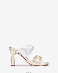 χρυσός 84Z4P2 γυναίκες Unisa πέδιλο μεταλλικό δερμάτινο με φαρδύ τακούνι