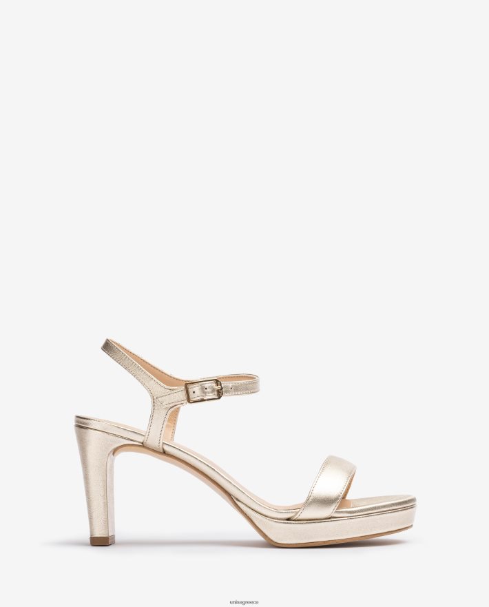 χρυσός 84Z4P2 γυναίκες Unisa πέδιλο μεταλλικό δερμάτινο με φαρδύ τακούνι