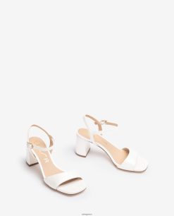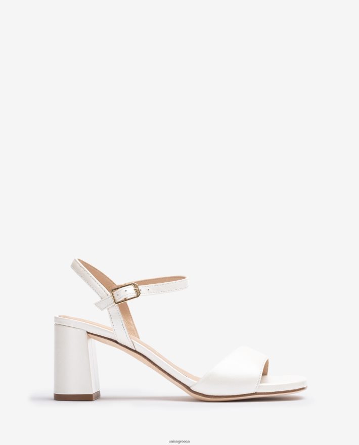 νυφικό δερμάτινο σανδάλι. λουράκι αστραγάλου που μπορεί να ρυθμιστεί χρησιμοποιώντας τη μεταλλική πόρπη. τετράγωνη μονάδα σόλας με ασορτί χρώμα δέρμα και τακούνι πλάτους 6 cm. Αντιολισθητική δερμάτινη σόλα.