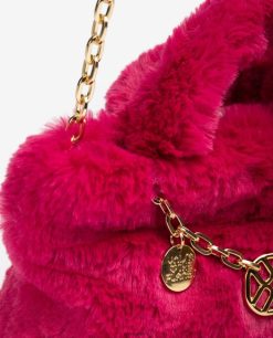 μικρή μίνι τσάντα από ανακυκλωμένο μαλακό ύφασμα πέλος. επένδυση αλυσίδας και φερμουάρ. ιμάντας ώμου cross-bag εσωτερικά. 14cm x 22cm x 9cm